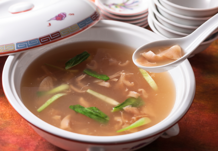 じんわりと絶妙な旨みが広がるふかひれスープ。濃縮タイプなので、3倍を目安に薄めてお楽しみください。お好みの具材を入れるなど手軽にお楽しみいただけます。本格中華料理店のレシピ協力をいただいた上品な味わい。フカヒレ入りの贅沢なスープの素として、幅広く活用できる使い勝手の良さが人気です。