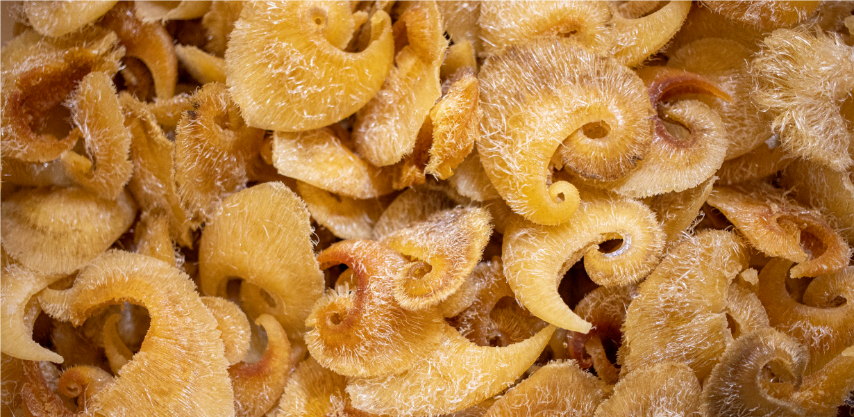 フカヒレに合うよう仕上げた餡は、鶏・豚ガラスープにタケノコ、シイタケ、エノキ、帆立貝柱、鶏肉など山海の幸をたっぷり使っています。フカヒレは小ぶりながら型崩れなくぷりっと美味。コラーゲンもたっぷりです。