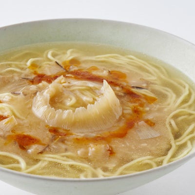 フカヒレ姿入りの特製あんかけは、山海の幸を合わせた複層的な風味でとろりと細麺に絡みます。スープは魚介メインの塩味ベース。チキンやポークの旨みも加え、あっさりしながら深みのある味わいに。ホタテなどを使って手作りする万能調味料「XO醤」は、ちょい足しするだけで絶妙な旨み&辛みが加わります。