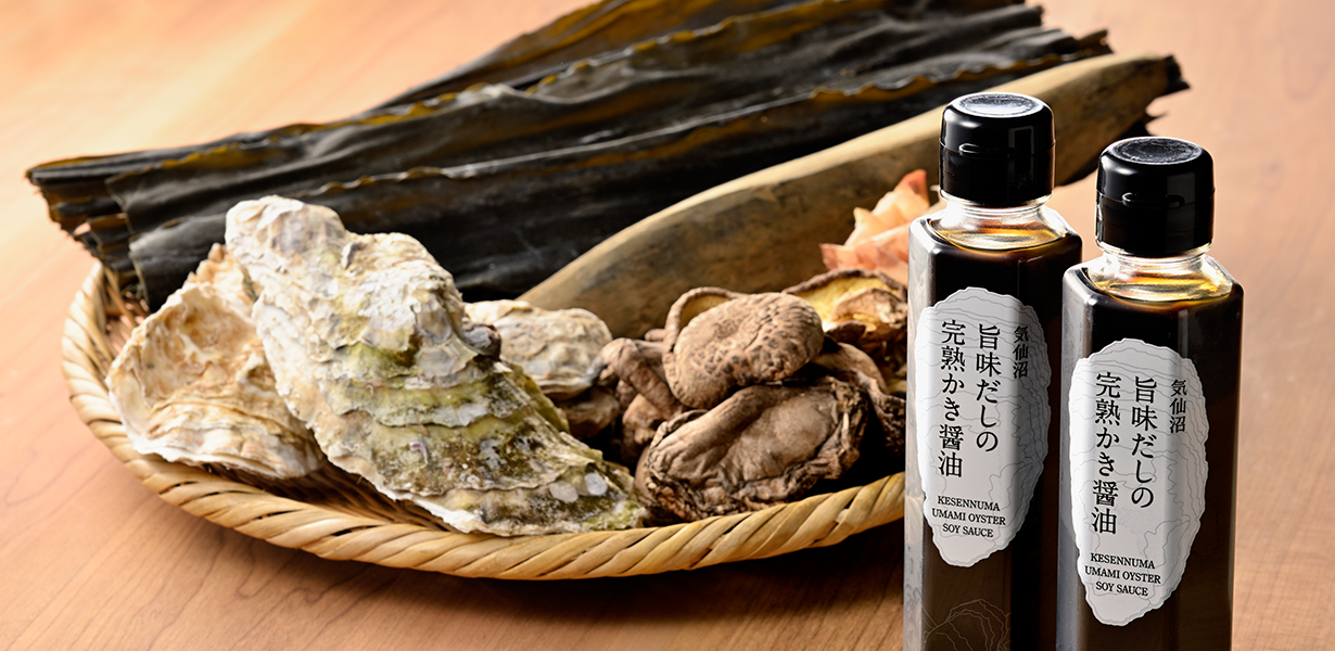和食文化の要・醤油の魅力と日本の旨味文化を広く伝えたいと開発した「牡蠣醤油」。大吟醸のように磨きをかけた牡蠣の旨みと地元醤油屋さんのまろやかな醤油、数種のだしの滋味深い味わいを楽しめます。