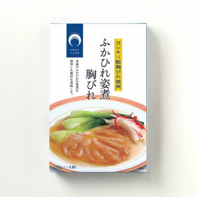 温めるだけで手軽に召し上がれるヨシキリ鮫の胸びれ姿煮です。ふかひれの中でもやわらかくゼラチン質が豊富な胸びれは、なめらかでとろける食感が特徴です。