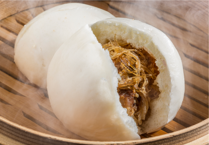 程よい甘味のあるタレをまとった豚のジューシーな味わい。とろけるようなフカヒレをタネに加えたら味の相乗効果も生まれて相性ばっちり。中華まんの専門店に引けを足りません!