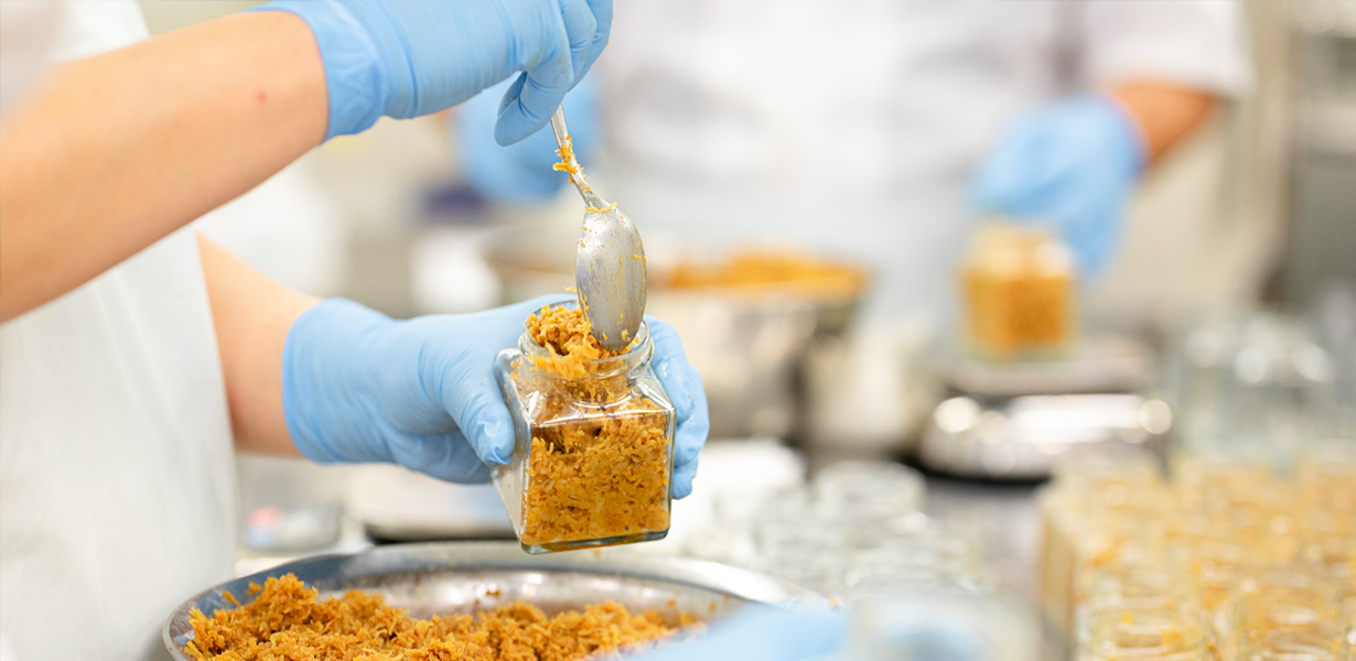 原料の下処理から瓶詰まで手作業で丁寧に作り上げています。 製造中は工場内がピーナッツ油の甘い香りと素材の香ばしさに包まれます。 旨みが強いので調味料は最小限。化学調味料や保存料は無添加です。