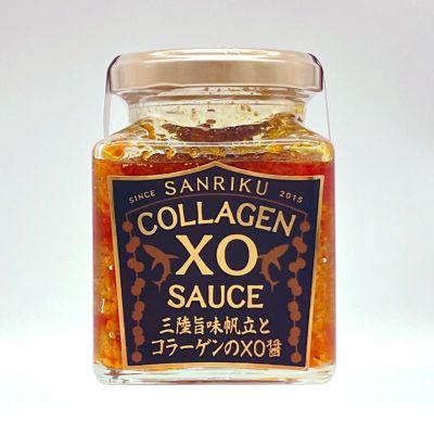 三陸産ホタテに金華ハム、蝦子(エビの卵)、さらに宮城県産の大豆、エシャロット、四川唐辛子を加え、モウカザメのフカコラーゲンが味をまとめます。すべての材料が複雑に織りなす芳香な香りと深みのある味わい。少しの量で、料理の味わいが変わる絶品の合わせ調味料です。化学調味料・保存料無添加。