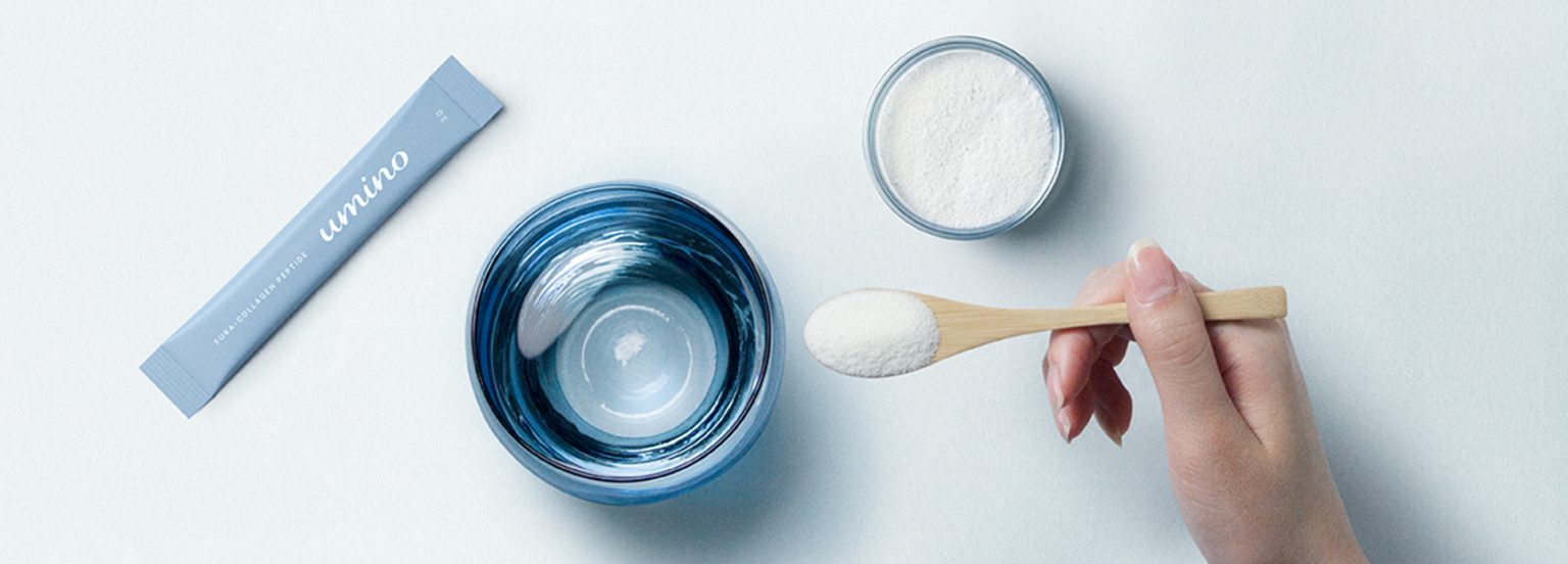 Uminoは継続性を考えた、高密度コラーゲン製法。実は、同じ内容量でも、含まれているコラーゲンの量は製品ごとに違います。Uminoのフカコラーゲンペプチドは、1本(3g)あたりのコラーゲン量が約2,500mgと高密度。だから、続けやすい。1日たった2本で必要なコラーゲンを摂ることができます。